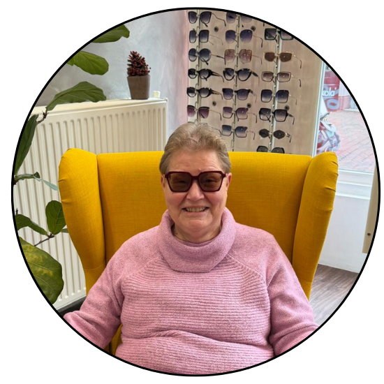 Jolanda met haar nieuwe zonnebril op sterkte van Kador Eyewear.
