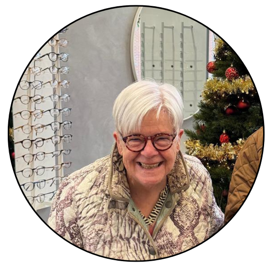 Mevrouw Buijze met haar nieuwe bril van Sashee Schuster.
