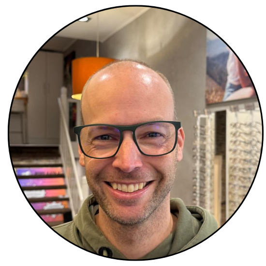 Michel Kroon met zijn nieuwe bril van Raydiant Eyewear